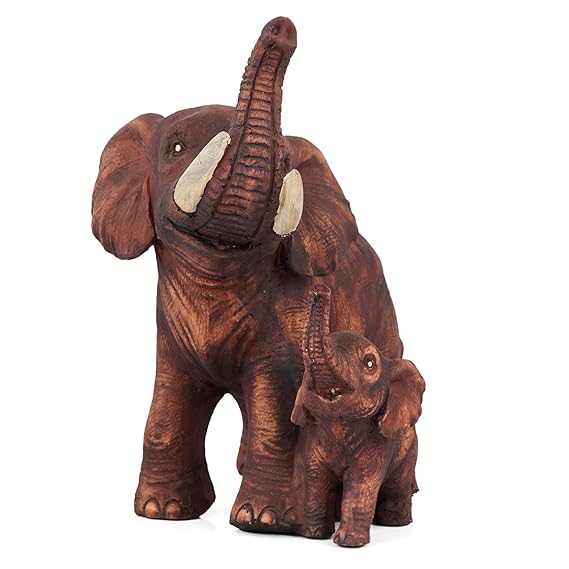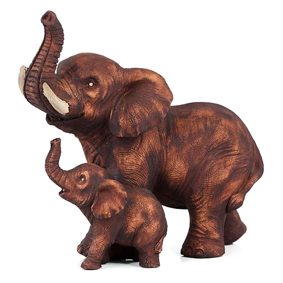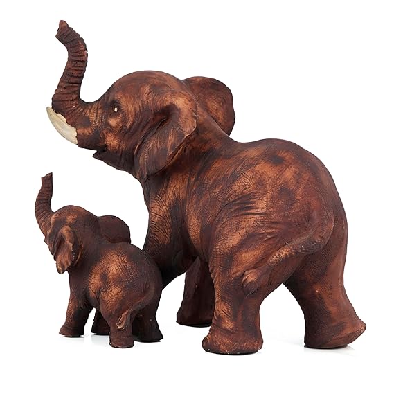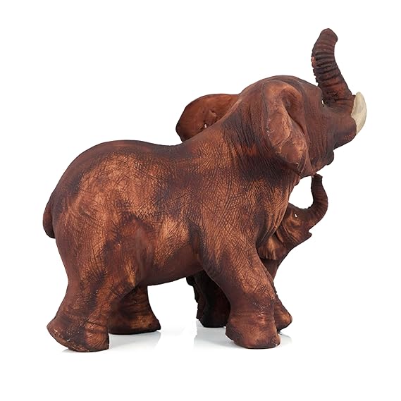 Bring home the warmth of love and protection with this Brown Poly Resin Mother & Baby Elephant Showpiece. Expertly crafted from high-quality polyresin, this 8-inch sculpture captures the tender bond between a mother elephant and her baby, making it a symbol of strength, care, and family values. The lifelike detailing and earthy brown finish add a rustic yet elegant touch to any space, be it your living room, office desk, or showcase. Ideal for gifting or decorating, this single-piece figurine radiates positivity and charm, perfect for those who appreciate meaningful decor.